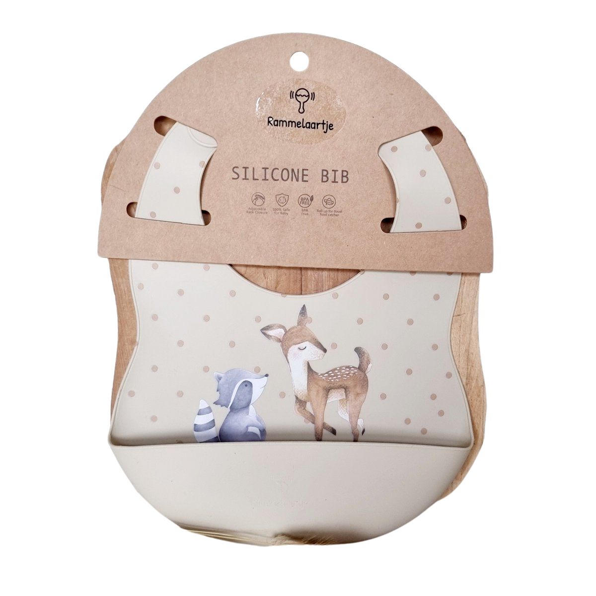 Bavaglino in silicone con raccoglitore - Cervo e Procione