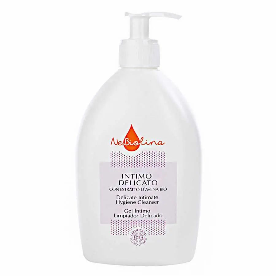 Detergente intimo delicato con avena e olio d’oliva bio, senza sapone, ideale per pelli sensibili e testato ai metalli.