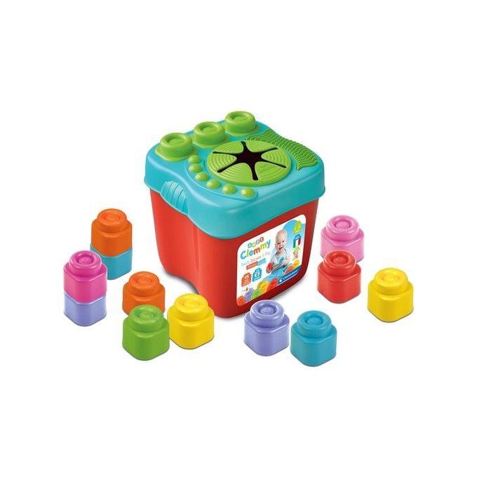 Un nuovo secchiello clemmy con coperchio morbido, arricchito di textrure ed incastri per giocare con i 15 mattoncini inclusi.
