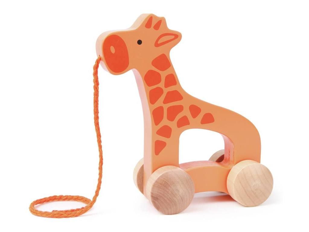 Prendi la piccola giraffa e tirala dietro di te. Scoprite insieme il grande regno animale.