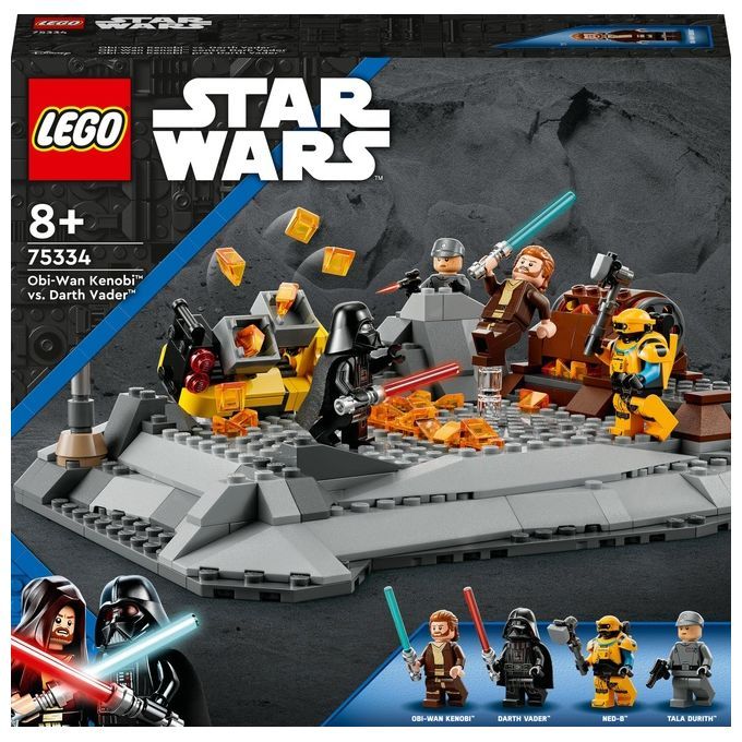 Rivivi un battaglia infuocata tra Obi-Wan Kenobi e Darth Vader con questo playset costruibile LEGO® Star Wars™ (75334), caratterizzato da un campo di battaglia con 2 piattaforme girevoli, una funzione pop-up che sventra il campo di battaglia con il fuoco e un carrello da miniera da abbattere. Sono incluse anche 4 minifigure LEGO di Obi-Wan Kenobi e Darth Vader, ciascuna dotata di spada laser, Tala Durith e il droide NED-B per ricreare le scene di Star Wars: Obi-Wan Kenobi.