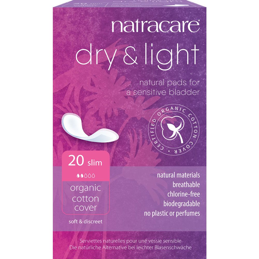 Gli assorbenti Dry & Light hanno un doppio strato di cellulosa assorbente ricoperto da una morbida fodera in cotone certificato biologico e puro al 100%, che permette alla pelle di respirare e rimanere comodamente asciutta, soprattutto in caso di pelle sensibile.