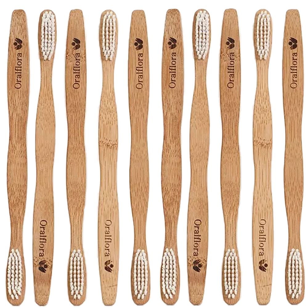 Spazzolino da denti in bambù con setole in nylon dense e resistenti, senza BPA.