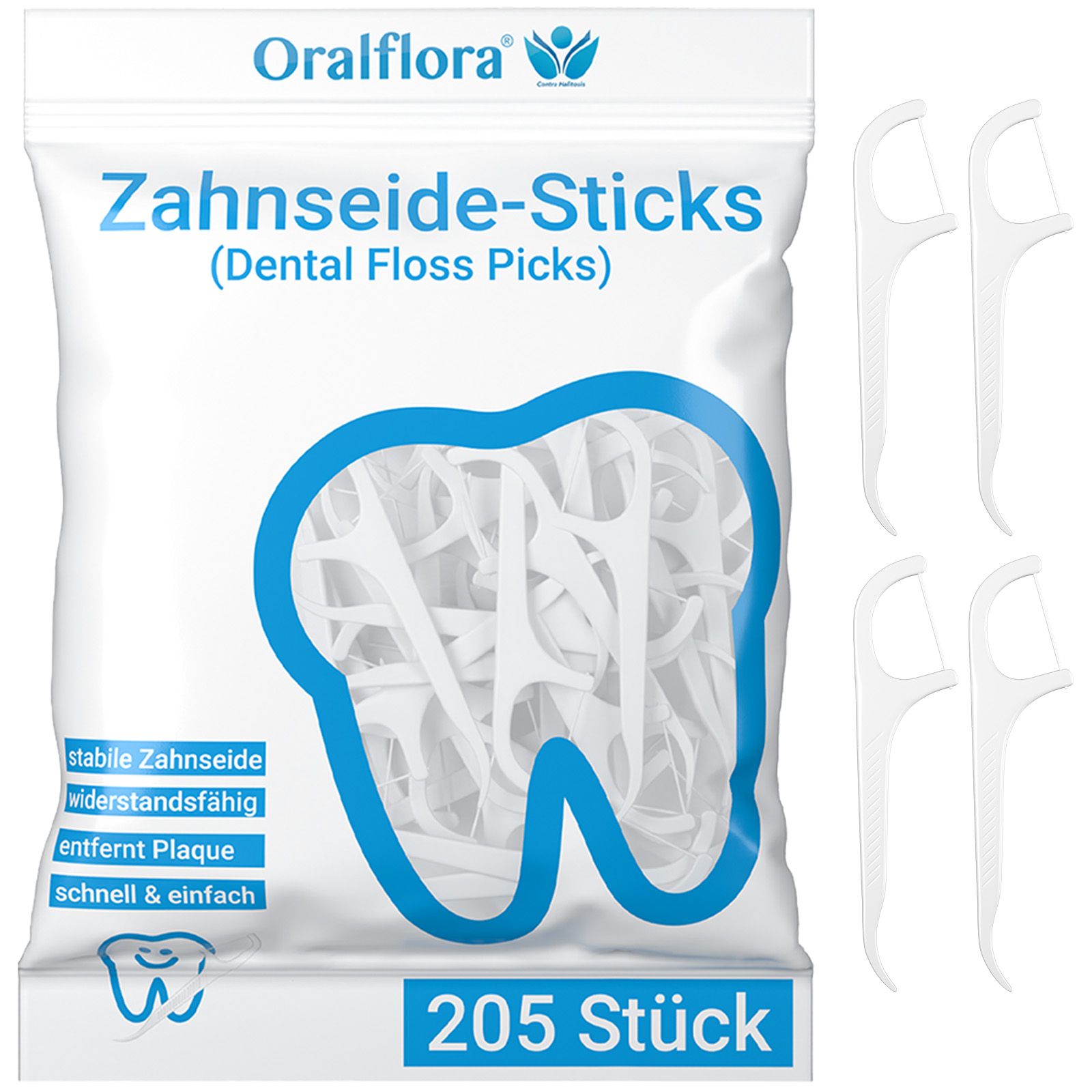 Igiene dentale completa: pulisce efficacemente tra i denti. Gli stuzzicadenti Oralflora rimuovono residui di cibo, placca e batteri dalle aree difficili da raggiungere, per denti puliti e alito fresco. Ergonomico e stabile: utilizzo confortevole e senza strappi. Grazie all'impugnatura antiscivolo e al filo interdentale premium resistente agli strappi, la pulizia è rapida, precisa e indolore, anche negli spazi stretti tra i denti. 205 stuzzicadenti XXL. Grande scorta in un sacchetto richiudibile. Perfetto per l'igiene dentale quotidiana: 205 stuzzicadenti in confezione igienica, ideali per casa, viaggio o in viaggio. DELICATO PER LE GENGIVE: adatto anche per gengive sensibili. Pulizia delicata senza lesioni: il filo interdentale cerato scorre senza sforzo e riduce l'irritazione gengivale con un uso regolare. MULTIFUNZIONALE: stuzzicadenti e filo interdentale in un unico strumento. Punta stuzzicadenti per detriti grossolani, filo interdentale per una pulizia fine. Design 2 in 1 per un'igiene orale completa con un unico strumento.