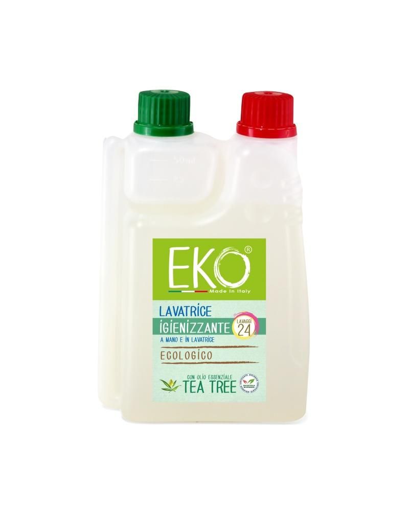 EKO detersivo ecologico IGIENIZZANTE lavatrice e bucato a mano super concentrato con olio essenziale di tea tree, che grazie alle sue naturali proprietà antibatteriche, igienizzanti e disinfettanti assicura ai capi una pulizia a fondo e un profumo di freschezza!