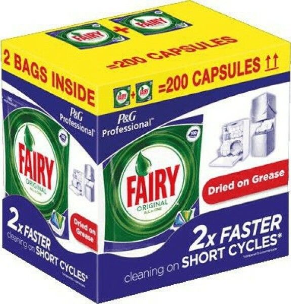 All-in-One Geschirrspültabs Kein Vorwaschen notwendig Für langanhaltenden Glanz Reinigt bereits bei umweltschonendem Spülprogramm In wieder verschließbarem Beutel 200 Tabs pro Beutel Mehr Glanz und Reinheit für Ihr Geschirr dank der All-in-One Spülmaschinentabs von FAIRY. Mit nur einem Spülgang entfernen die Tabs hartnäckigen Schmutz ganz ohne Vorwaschen und sorgen so für strahlende Ergebnisse. Ein weiterer Pluspunkt der Tabs ist, dass diese Ihre volle Kraft bereits bei niedrigen Spülprogrammen entfalten. Der wiederverschließbare Beutel ermöglicht eine sichere sowie komfortable Aufbewahrung der Tabs.Gefahr, Verursacht schwere Augenschäden.Darf nicht in die Hände von Kindern gelangen. BEI KONTAKT MIT DEN AUGEN: Einige Minuten lang behutsam mit Wasser spülen.Sofort GIFTINFORMATIONSZENTRUM/Arzt anrufen.Augenschutz tragen. BEI VERSCHLUCKEN: Mund ausspülen.KEIN Erbrechen herbeiführen.Ein wenig Wasser trinken zum Verdünnen. Enthält Protease.Kann allergische Reaktionen hervorrufen. Enthält Sodium Carbonate PeroxideInhaltsstoffe / Zutaten5-15% non-ionic surfactants, oxygen based bleach, polycarboxylate,