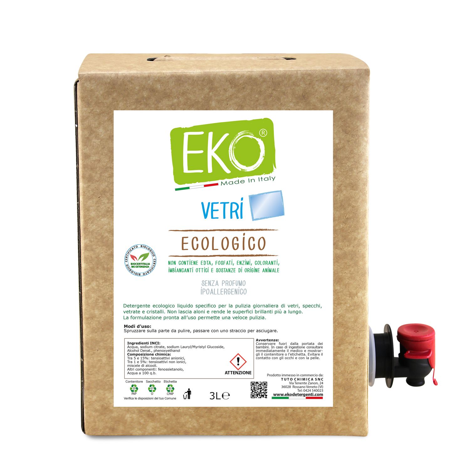 Eko Detergente Vetri Ecologico Bag in Box lt 3 NO PROFUMO - Prodotto Professionale - CERTIFICATO BIOCERTITALIA