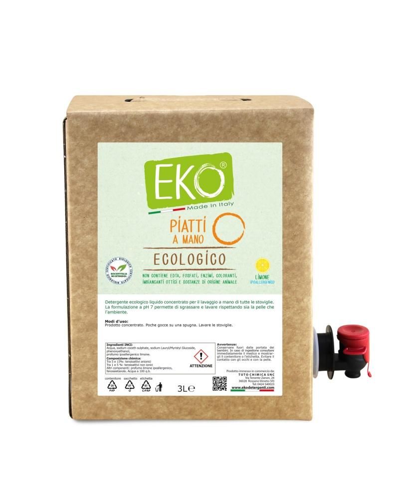Eko Detersivo Piatti Ecologico Bag in Box lt 3 LIMONE - Prodotto Professionale - CERTIFICATO BIOCERTITALIA