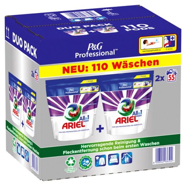 Detersivo per colori Ariel Professional All-in-1 Pods, 110 carichi, (2 x 55 capsule), pluripremiato