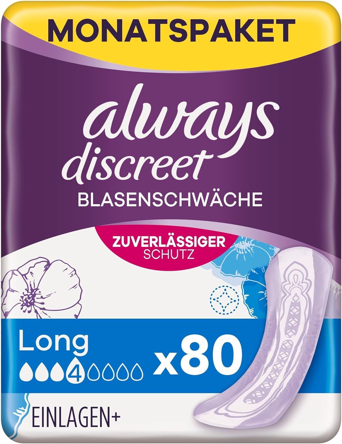 Gli assorbenti per incontinenza Always Discreet Plus Long per perdite di urina frequenti