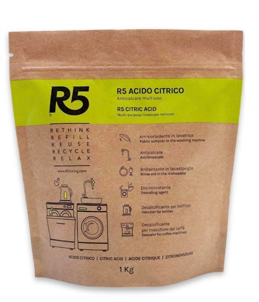 R5 Acido Citrico Polvere 1 kg, Anticalcare Multiuso, Brillantante e Ammorbidente