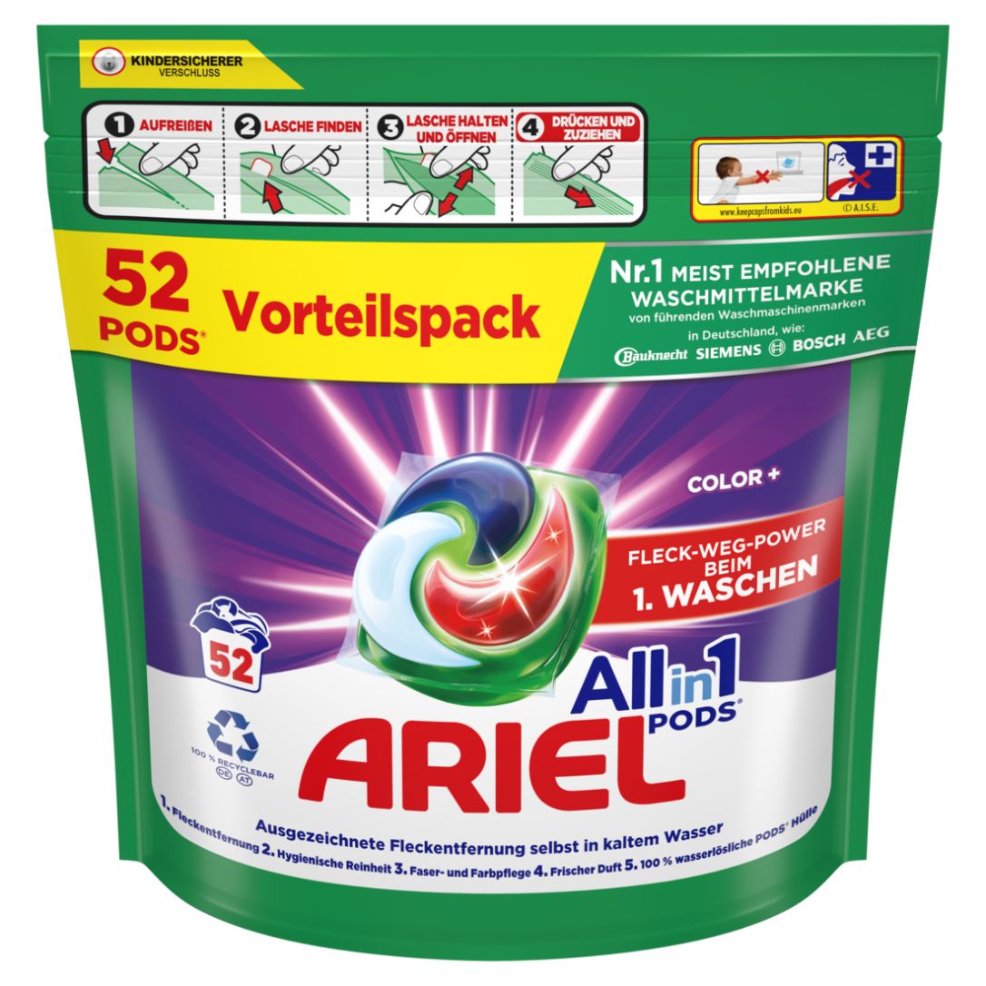 Scoprite Ariel, il marchio di detersivi più consigliato dai principali marchi di lavatrici in Germania, come: Bauknecht SIEMENS BOSCH AEG. Ariel presenta le capsule di lavaggio Allin1 PODS® Color+, ora dotate di una camera rossa aggiuntiva e che offrono un'eccellente rimozione delle macchie al primo lavaggio. Sono state sviluppate per il lavaggio a freddo e sono dotate di tecnologie uniche come la tecnologia COOL CLEAN. Lavate a freddo con Ariel Allin1 PODS® Color+: risparmiate energia a ogni lavaggio e riducete le emissioni di CO2 del vostro bucato. Inoltre, l'imballaggio delle capsule di lavaggio Ariel Allin1 PODS® è riciclabile al 100% e può essere smaltito nel bidone giallo (DE) (AT). L'involucro 100% idrosolubile dei PODS® si scioglie completamente a contatto con l'acqua, rilasciando la potente formula smacchiante che conferisce ad Ariel Allin1 PODS® Colour+ una pulizia profonda e potente. ATTENZIONE: tenere fuori dalla portata dei bambini. Provoca gravi danni agli occhi e irritazioni cutanee. Tenere sempre le capsule di detersivo Ariel Allin1 PODS® fuori dalla portata dei bambini. POTENZA DI SMACCHIAMENTO AL PRIMO LAVAGGIO: Ariel Allin1 PODS® sono ora dotati di una camera rossa aggiuntiva e offrono un'eccellente rimozione delle macchie al primo lavaggio. Il MARCHIO DI LAVATRICI PIÙ CONSIGLIATO dai principali marchi di lavatrici in Germania come: Bauknecht SIEMENS BOSCH AEG Allin1 POWER: 1. rimozione delle macchie 2. pulizia igienica 3. cura delle fibre e dei colori 4. fresco profumo 5. copertura PODS® 100% idrosolubile SVILUPPATO PER UN LAVAGGIO FRESCO: le capsule di lavaggio Ariel Allin1 PODS® sono ora dotate dell'esclusiva tecnologia COOL CLEAN. LAVAGGIO PIÙ FRESCO CON ARIEL Allin1 PODS®: risparmiate energia a ogni lavaggio e riducete le emissioni di CO2 del vostro bucato.