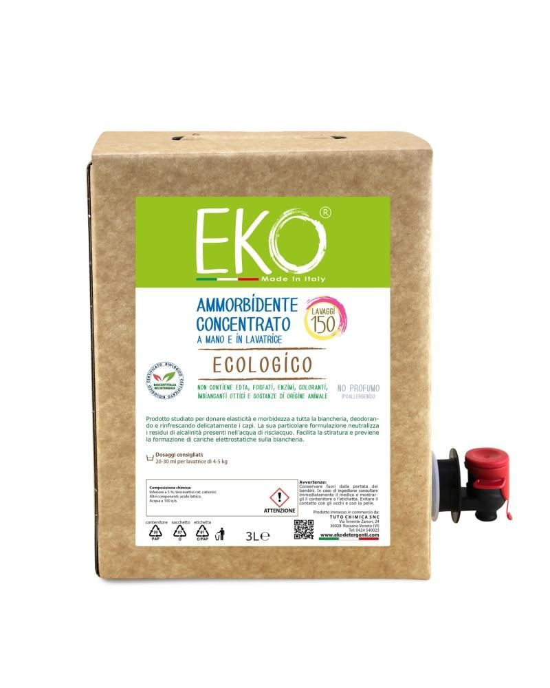 Eko Ammorbidente Ecologico Liquido Bag in Box lt 3 - NO PROFUMO - Prodotto Professionale - CERTIFICATO BIOCERTITALIA