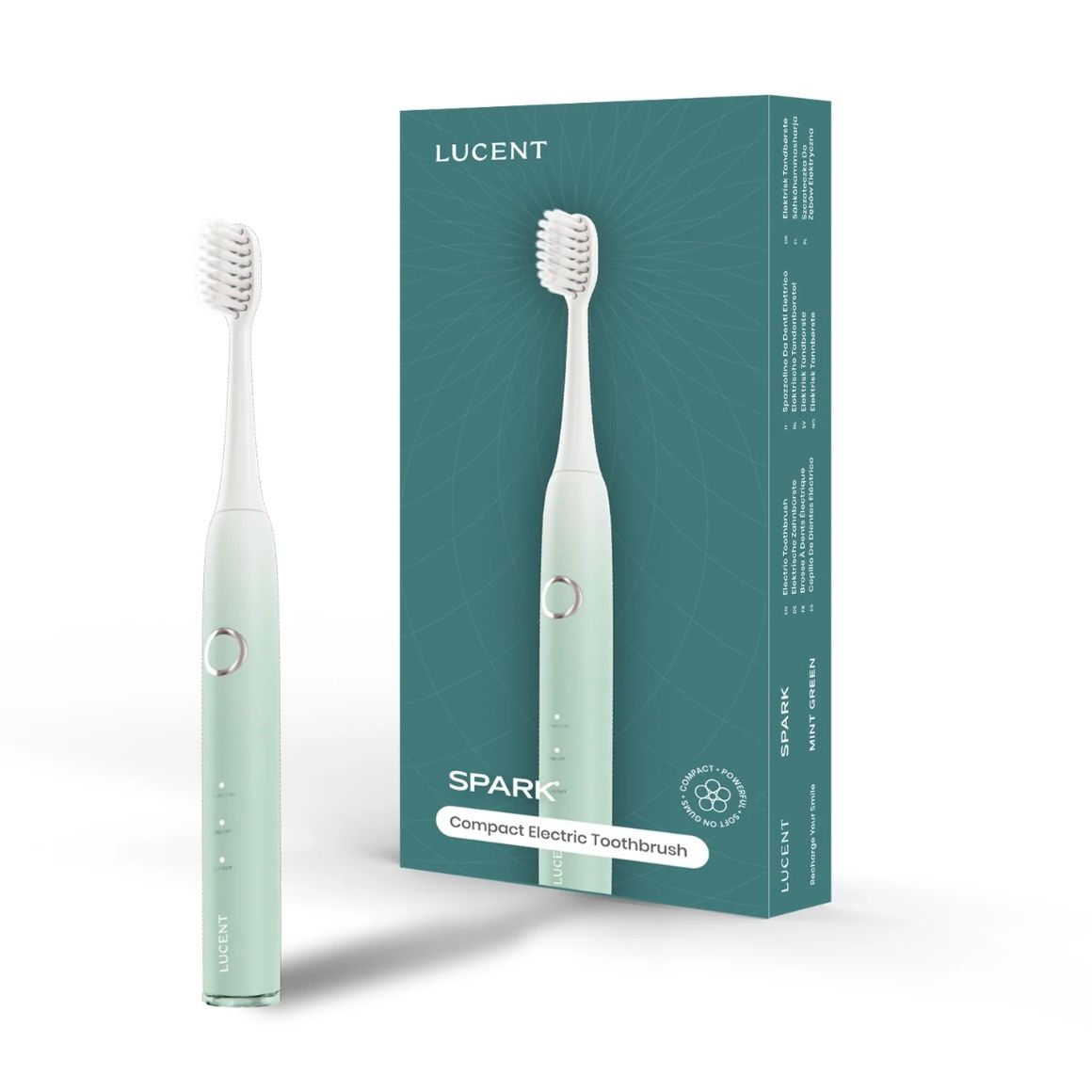 Spazzolino sonico compatto con setole ultra morbide, 25 giorni di autonomia e design elegante.