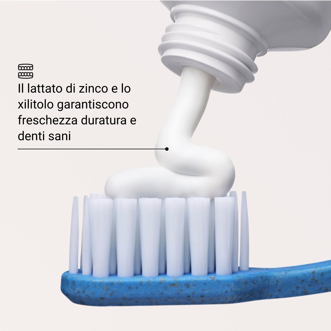 - Particolarmente efficace contro la placca e l’alitosi: il lattato di zinco e lo xilitolo assicurano una freschezza duratura e denti sani.
