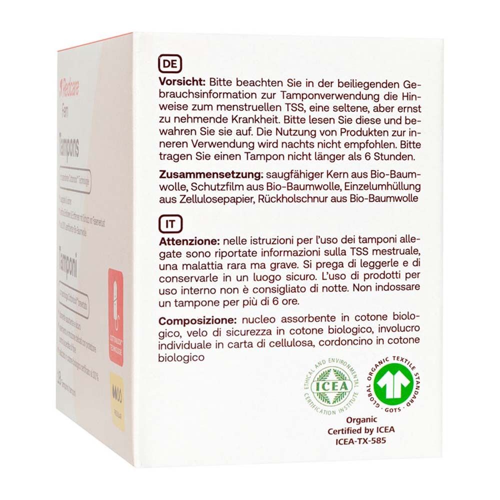 Redcare Tamponi – Protezione e comfort in cotone biologico. I tamponi Redcare offrono una protezione affidabile e il massimo comfort durante il ciclo. Realizzati al 100% in cotone biologico, riducono significativamente il rischio di prurito, irritazioni e allergie.