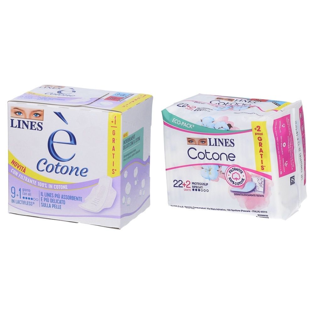 LINES E' Cotone Ali Assorbente Esterno + LINES Cotone Proteggislip Ripiegati