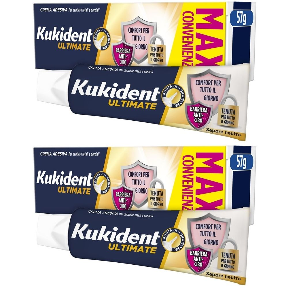 - 2x Kukident Ultimate Crema Adesiva Protesi Dentali Gusto Neutro Formato Maxi 57 g