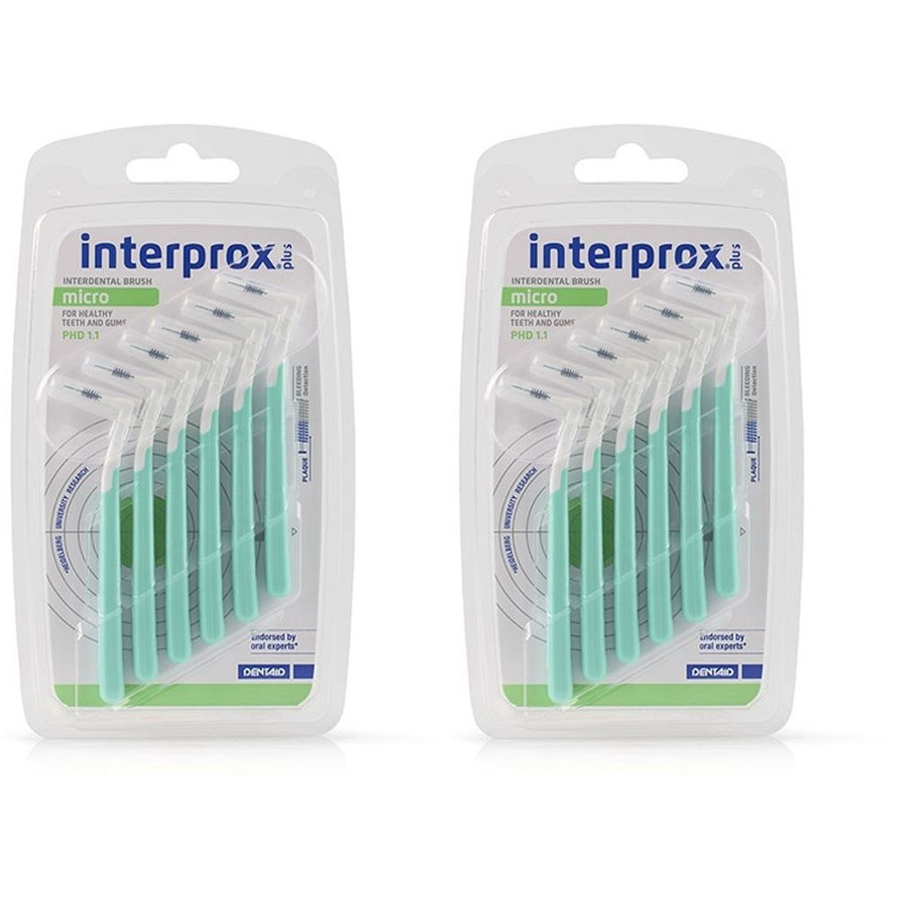 - 2x Interprox Plus Micro 6 Scovolini Verdi, Anti-Placca e Anti-Carie per spazi interdentali piccoli (PHD 11) 6 Pc