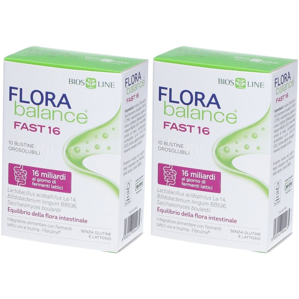 Flora Balance Fast favorisce l'equilibrio della flora intestinale anche in presenza di diarree e disturbi intestinali.