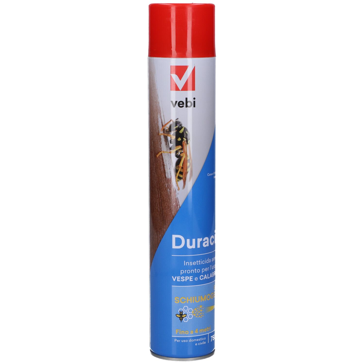 Insetticida aerosol specifico per combattere e controllare vespe e calabroni, oltre a una vasta gamma di insetti volanti. Grazie ai suoi componenti esplica una duplice azione abbattente e residuale. Lo speciale erogatore e l’ampia apertura della rosa permettono di colpire facilmente l’obiettivo. Il getto raggiunge i 4 metri, consentendo il trattamento a distanza di sicurezza. Indicato per uso domestico e civile.
