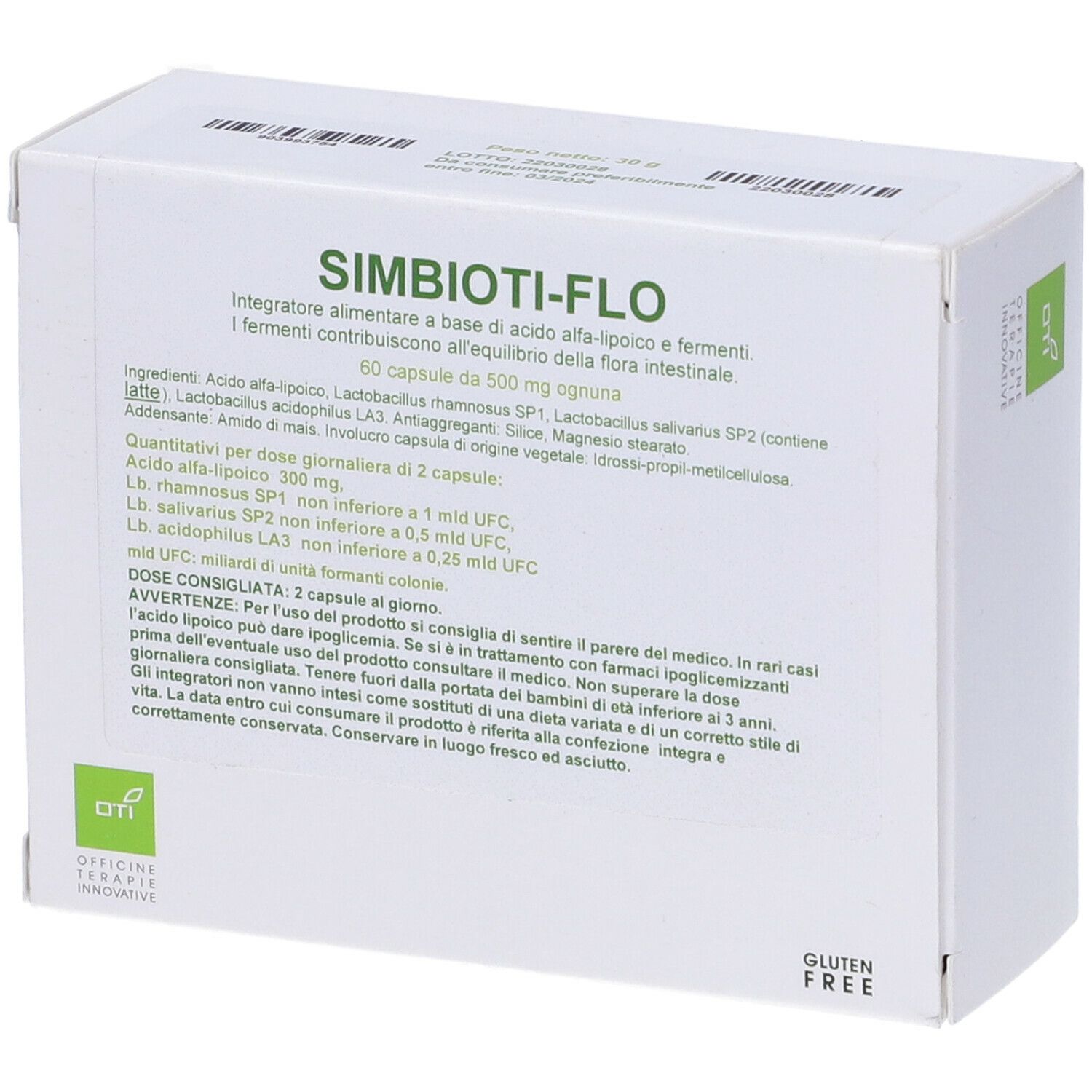 lactobacillus salivarius 4 mld ufc; lactobacillus acidophilus 3 mld ufc; lactobacillus rhamnosus 3 mld ufc; acido a-lipoico; amido di mais; magnesio stearato vegetale; biossido di silicio.