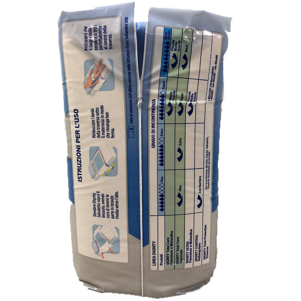 Traversa monouso dotata di un materassino di cellulosa ed è disponibile in diverse misure. Può essere utilizzata per la protezione di letto, biancheria, sedie e poltrone.