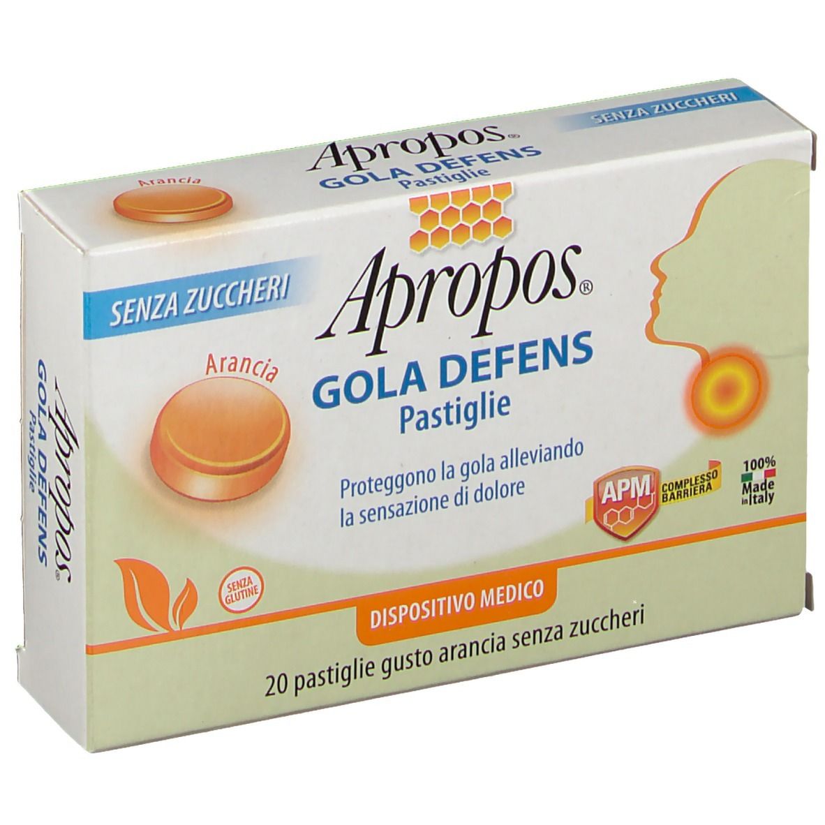 Apropos GOLA DEFENS Pastiglie, grazie al Complesso Barriera APM crea un film mucoadesivo ad effetto barriera che protegge la mucosa orofaringea dall’attacco di agenti esterni dannosi, idratandola. Grazie all’azione filmogena Apropos GOLA DEFENS Pastiglie mantiene la gola protetta dagli agenti esterni, alleviando la sensazione di dolore legata agli stati irritativi della gola, tipici delle faringiti e delle tonsilliti.