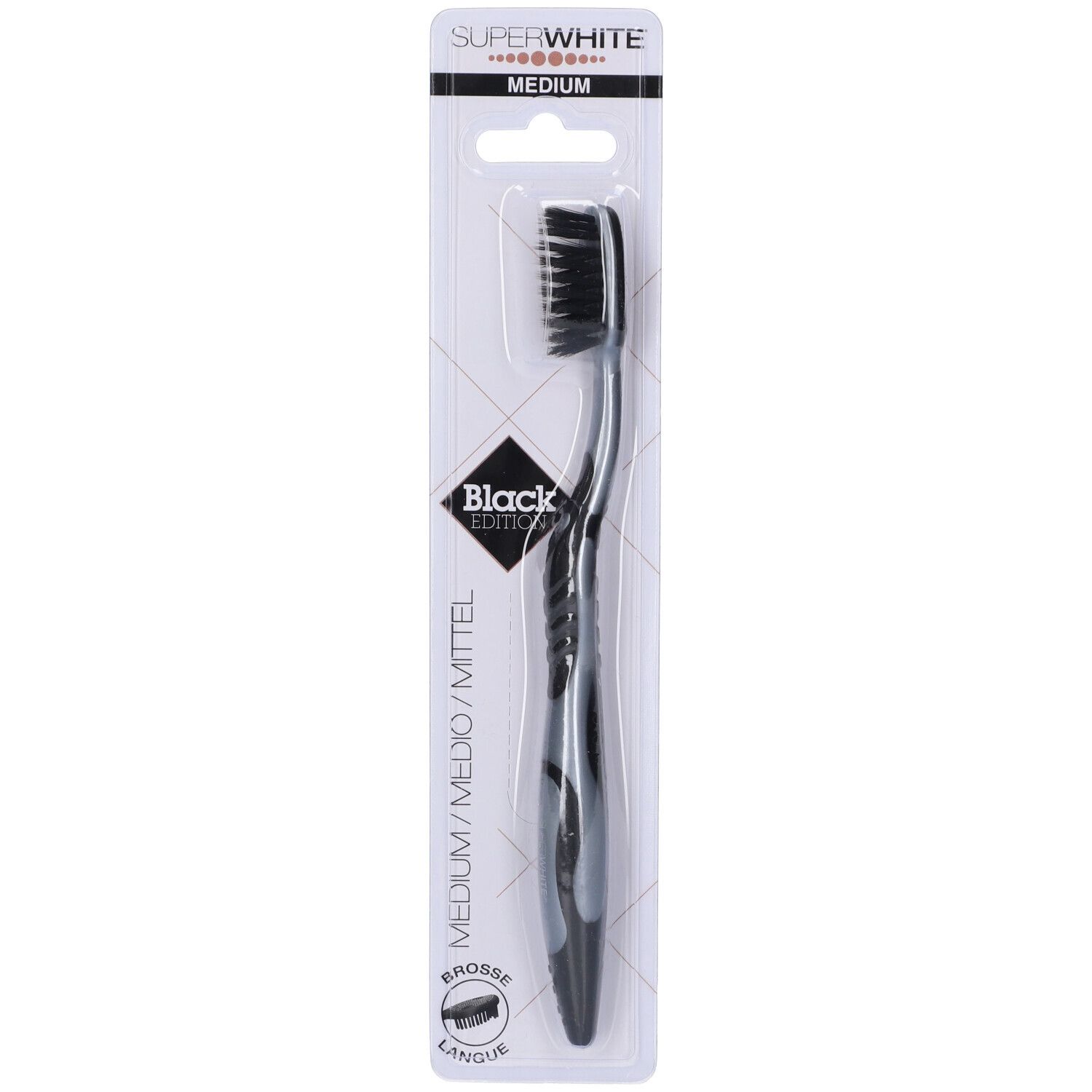 Ho acquistato 2 spazzolini Superwhite medi black edition ad un prezzo vantaggioso. Mi ha colpito il colore, ma se posso, non mi sento di consigliarlo. Il motivo? Le setole troppo troppo morbide. Per una igiene quotidiana non mi risulta efficace. In caso di interventi orali invece mi sento di consigliarlo.