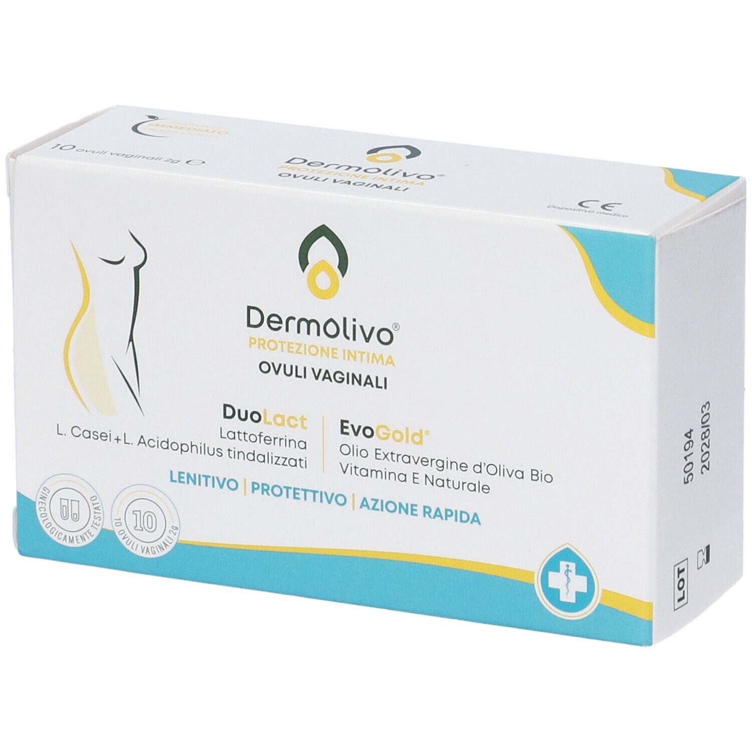 Gli ovuli sono a base di Evogold, un ingrediente registrato a base di Olio Extravergine di Oliva biologico e vitamina E naturale che crea un film lubrificante-protettivo sulla mucosa vaginale e contribuisce al mantenimento del suo fisiologico stato di idratazione.