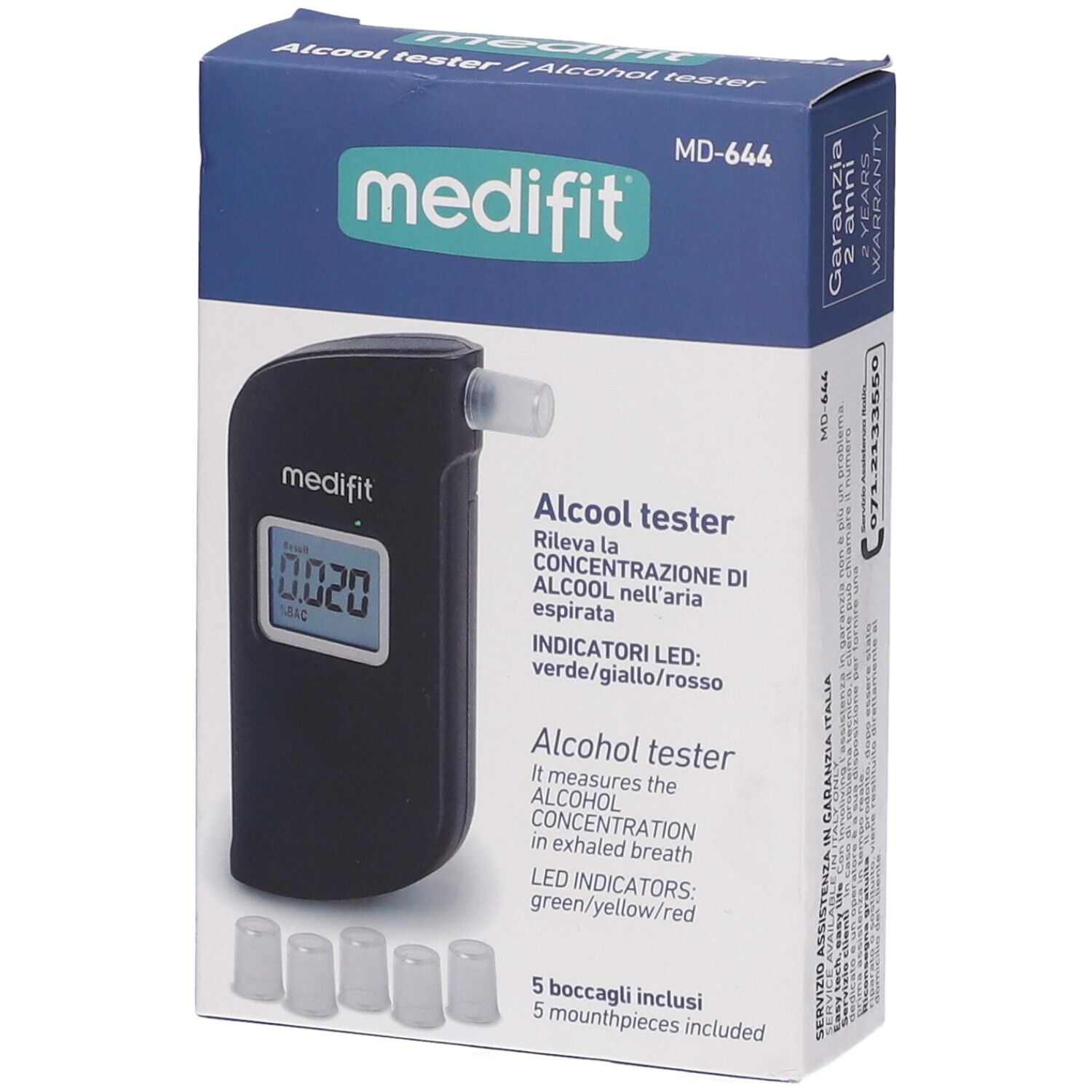 Il livello d’alcool nel sangue può variare al variare delle condizioni ambientali. Questo prodotto deve essere utilizzato solo come strumento di prevenzione e promozione di una guida più responsabile e sicura, fornisce una misurazione puramente indicativa, non esclude né sostituisce eventuali controlli effettuati dalle autorità competenti, che possono dar luogo a valori differenti da quelli risultati attraverso la misurazione con il test. I valori di tasso alcolico misurati dal test non hanno rilevanza ai fini legislativi, né esonerano il soggetto da alcuna responsabilità. Modalità di conservazione non corrette del prodotto e/o un utilizzo non corretto dello stesso, possono influire sull’accuratezza della misurazione. Non affidarsi per nessun motivo solamente a questo prodotto per determinare un possibile stato di ubriachezza e per decidere quindi di guidare un veicolo, utilizzare degli strumenti pericolosi o intraprendere attività rischiose. INNOLIVING Spa non è responsabile delle conseguenze derivanti dall’utilizzo improprio di questo prodotto. Prima dell’utilizzo assicurarsi che l’apparecchio si presenti integro senza visibili danneggiamenti. In caso di dubbio non utilizzare il prodotto e rivolgersi al servizio assistenza autorizzato. Dopo l’uso, riporre sempre il prodotto lontano da fonti di calore, raggi del sole, umidità, oggetti taglienti o simili. Non utilizzare sostanze alcoliche come, ad esempio, vernici o insetticidi nelle vicinanze del tester. Non usare sostanze chimiche per pulire il tester. Non immergere mai il prodotto in acqua o altri liquidi, il sensore potrebbe danneggiarsi. Non tentare di riparare il prodotto da soli, pena il decadimento della garanzia, ma rivolgersi sempre al servizio assistenza autorizzato. Sono necessari circa 20 minuti affinché l’alcool venga assorbito nel flusso sanguigno dal sistema digestivo; pertanto, si raccomanda di effettuare la misurazione dopo 20 minuti dal consumo di bevande alcoliche. Se la misurazione viene effettuata immediatamente dopo aver bevuto, i risultati possono riflettere la concentrazione di alcool presente nella bevanda e non quella effettiva nel sangue. Per ottenere risultati di misurazione più accurati, l’intervallo tra due misurazioni consecutive deve essere superiore a 3 minuti.
