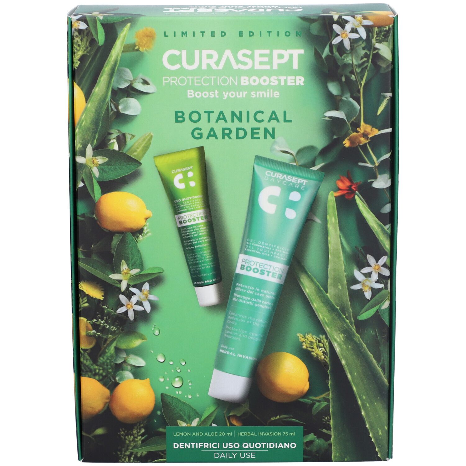 Curasept Botanical Garden Protection Booster Set Dentifricio Herbal Invasion + Limone e Aloe
