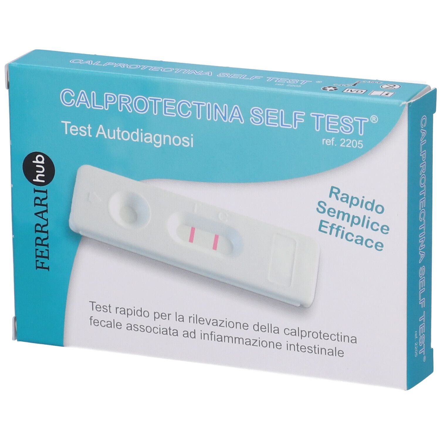 Test autodiagnostico per la rilevazione della calprotectina fecale associata a infiammazione intestinale. La calprotectina è una proteina presente nei granulociti neutrofili, rilasciata durante i processi infiammatori. La sua rilevazione nelle feci è utile per distinguere tra patologie infiammatorie intestinali (come morbo di Crohn o colite ulcerosa) e sindrome dell’intestino irritabile. Il test è immunologico e consente una rilevazione rapida e semplice di concentrazioni superiori a 50 mcg/gr di calprotectina.