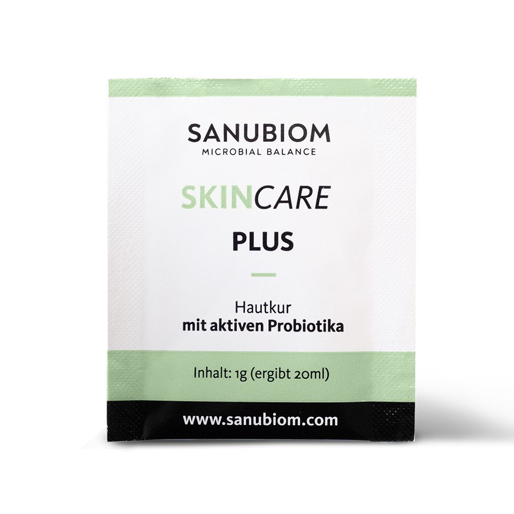 Una flora cutanea sana richiede un microbioma equilibrato con una varietà di batteri, batteriofagi o virus, funghi e acari. Per ripristinare questo equilibrio, viene utilizzato SkinCare Plus. La cura probiotica della pelle contiene 4,5 miliardi di probiotici attivi. I batteri amici della pelle aiutano ad aumentare la diversità di microrganismi, rafforzando così la flora cutanea.