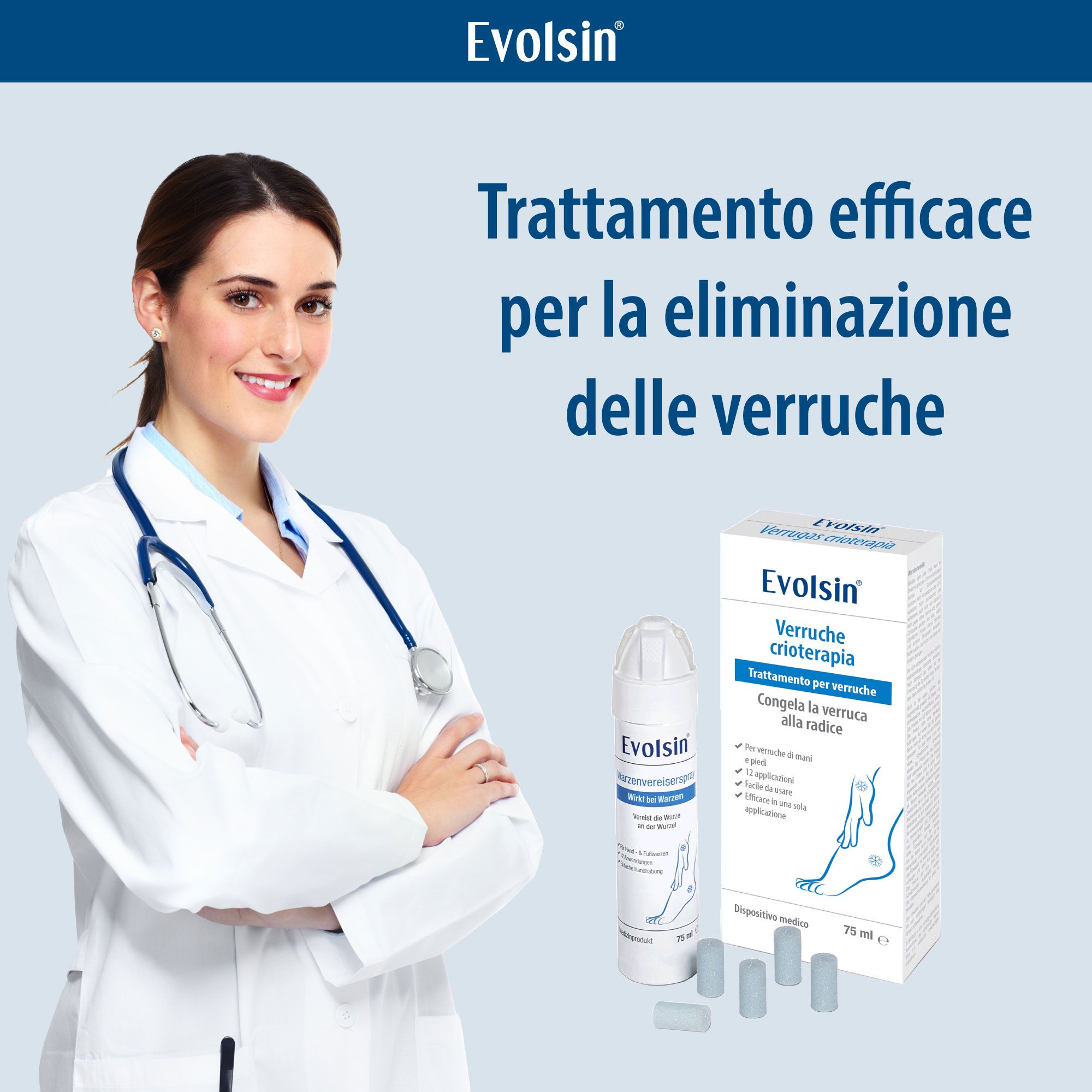 VERRUCH EVOLSIN® è specificamente progettata per la somministrazione topica direttamente sulle verruche. Il liquido della penna anti-verruche Evolsin viene assorbito immediatamente nella verruca. La penna contiene un composto cheratolitico che scompone e asciuga i tessuti localmente, eliminando così le verruche.