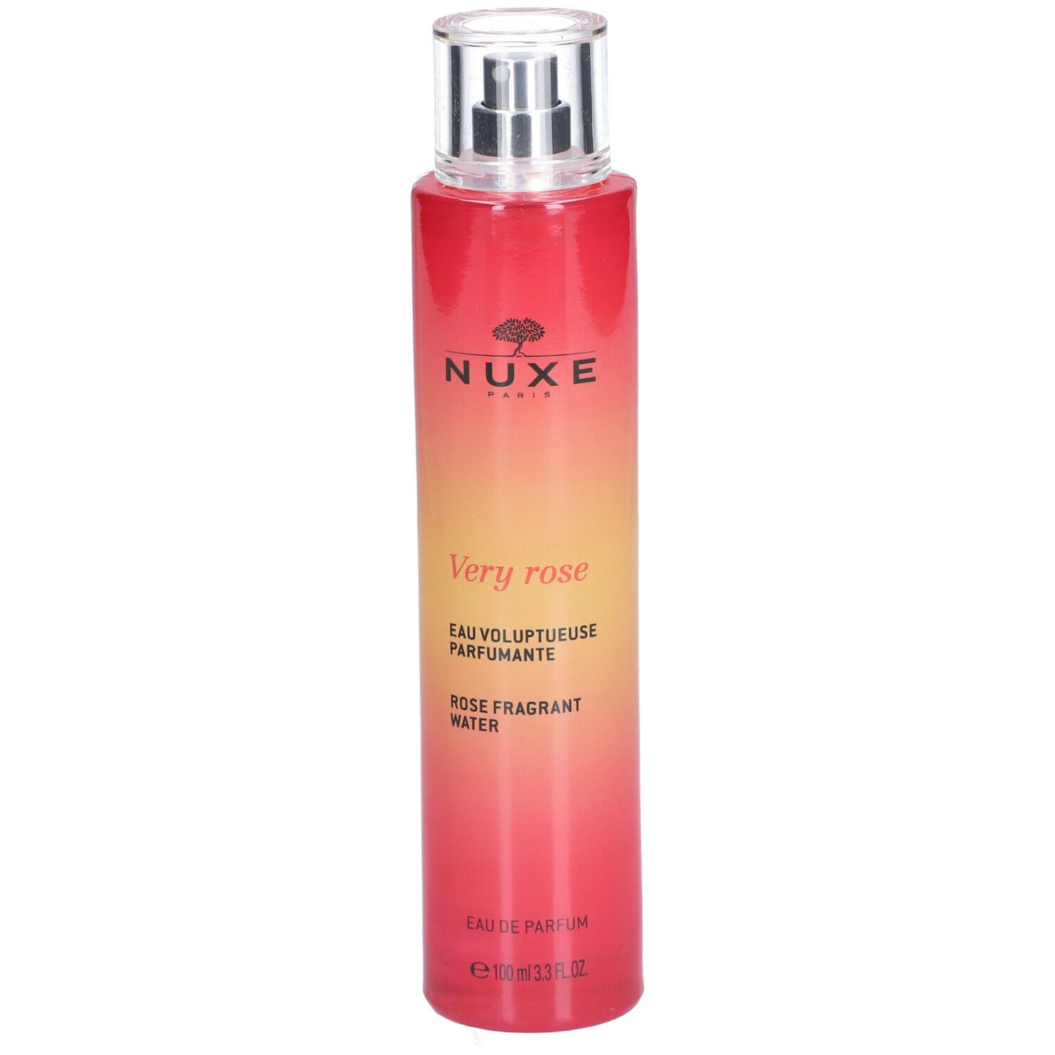 Acqua profumata Very Rose di Nuxe, spray 100 ml. Profumo floreale di rosa con note di gelsomino; formato spray pratico per l'applicazione quotidiana; ingredienti: ALCOHOL DENAT., AQUA/WATER, PARFUM/FRAGRANCE, LINALOOL, LIMONENE, CITRAL [N4110/A].