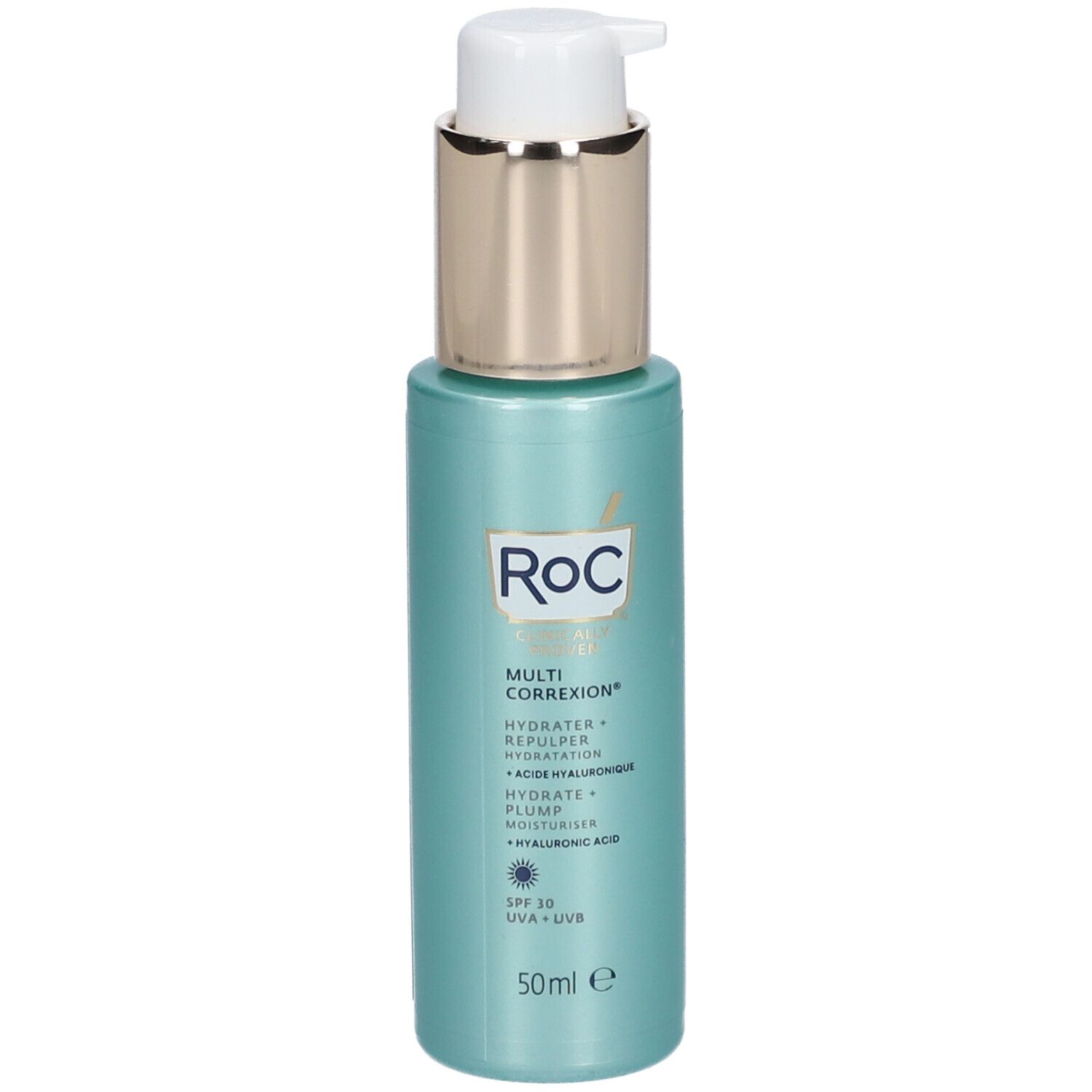 Idratante quotidiana RoC SPF30, 50 ml, con acido ialuronico per una pelle dall'aspetto più compatto.