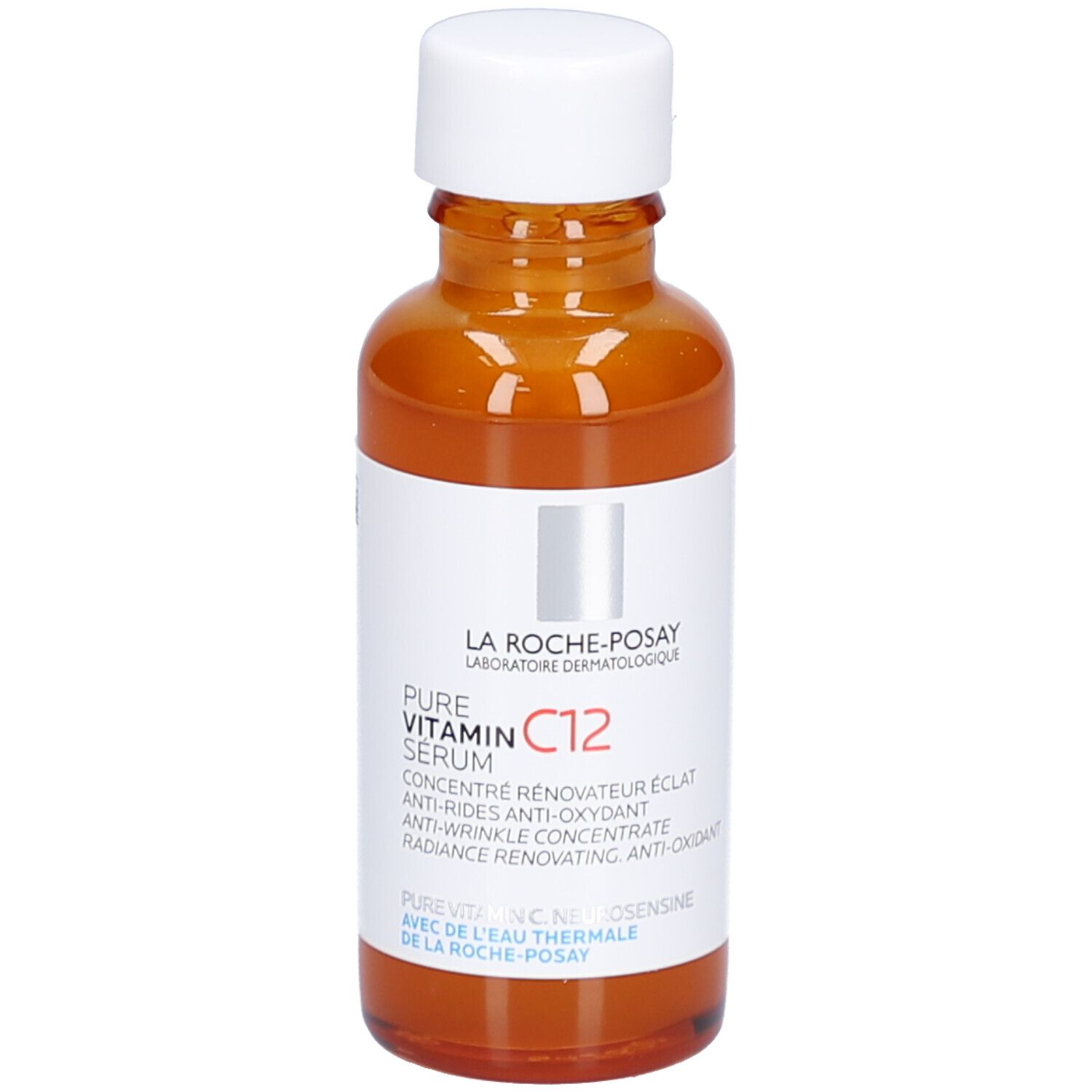 La Roche-Posay Redermic Pure Vit C12 è un siero viso concentrato da 30 ml con vitamina C pura, pensato per migliorare la luminosità della pelle e levigare l'aspetto delle rughe. La texture leggera si assorbe rapidamente, uniforma l'incarnato e dona un aspetto più radioso. Applicare qualche goccia sulla pelle detersa prima della crema abituale.