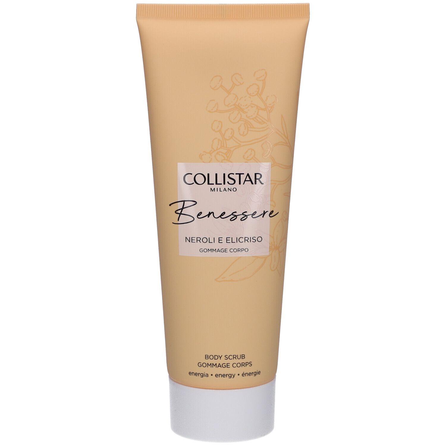 Gommage corpo ricco e cremoso Collistar al neroli e elicriso per un’esfoliazione delicata e una profumazione rilassante.