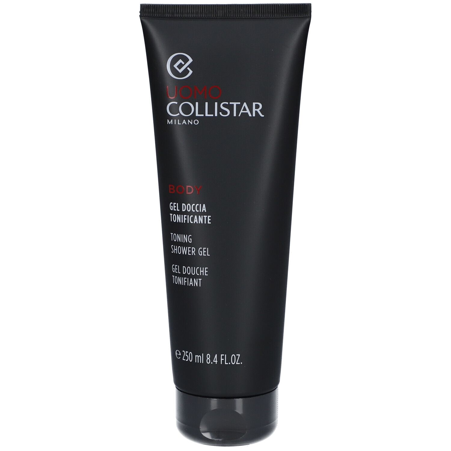 Gel doccia tonificante Collistar Men in formato 250 ml, ideale per l'uso quotidiano e per una sensazione di freschezza immediata.