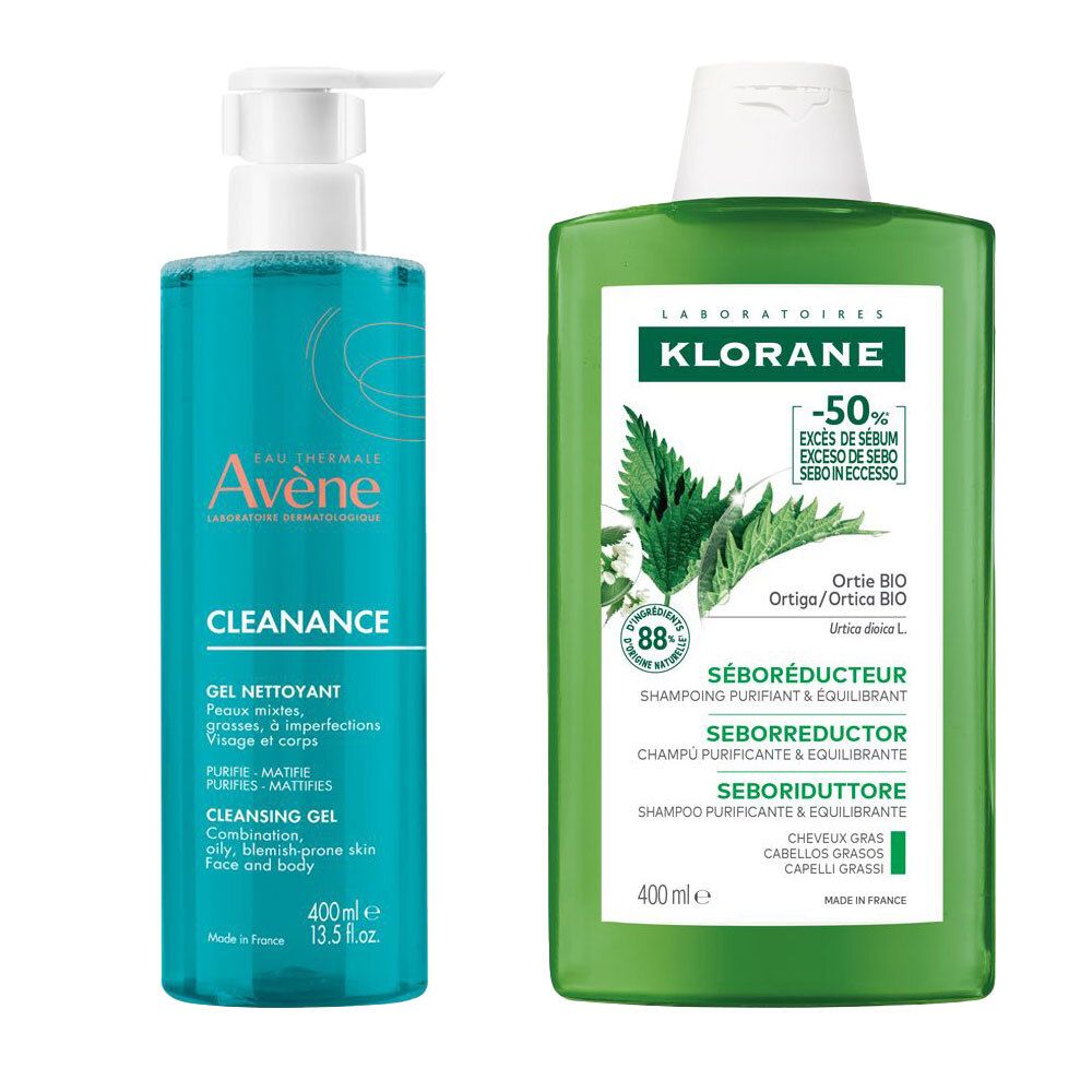 Eau Thermale Avène Cleanance Gel Detergente Purificante + Klorane Shampoo purificante ed equilibrante all'Ortica