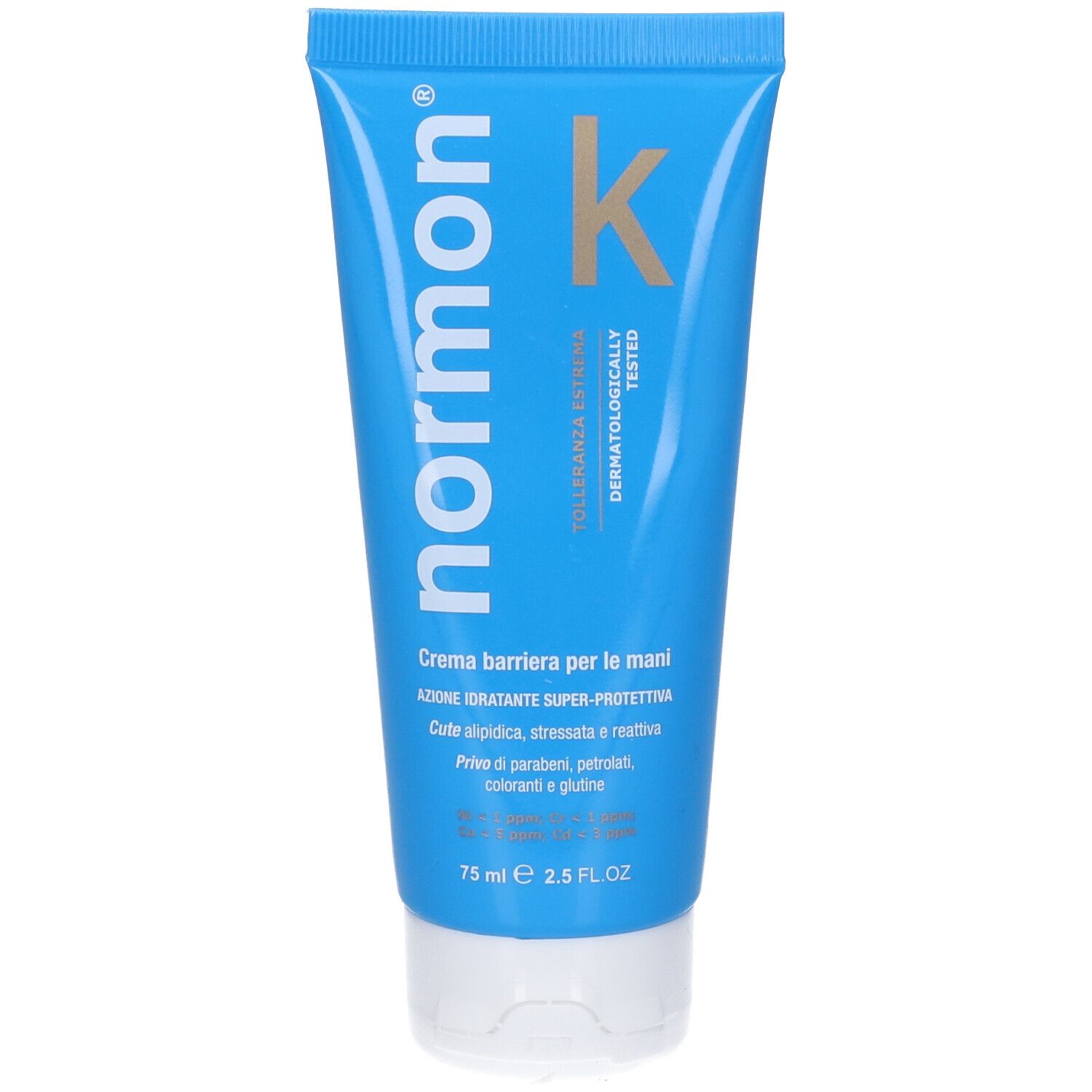 Normon K è una crema barriera super-protettiva per mani che lavorano. Applicata sulla pelle, prima di ogni lavoro, in casa, in ufficio ed in qualsiasi momento, previene e limita i danni che gli agenti esterni ambientali (vento, freddo, sole, polvere) e chimici, possono arrecare alla cute delle mani. Crea una barriera difensiva, efficace come un guanto invisibile. Rende la pelle più forte e resistente di fronte alle aggressioni esterne, prevenendo screpolature, rugosità, irritazioni ed arrossamenti, lasciando inalterata la fisiologia traspirazione ed il film idrolipidico naturale. Privo di conservanti, coloranti e glutine.