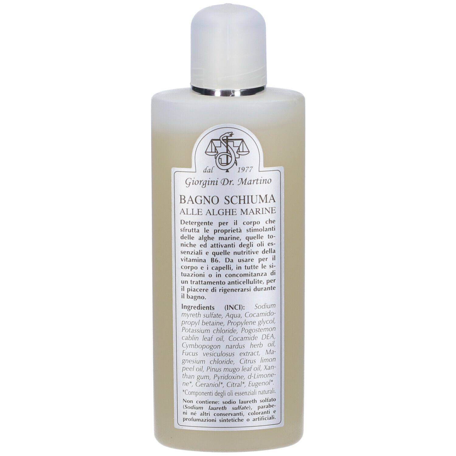Detergente per il corpo che sfrutta le proprietà stimolanti delle alghe marine, quelle toniche ed attivanti degli oli essenziali e quelle nutritive della vitamina B6. Da usare sul corpo e i capelli, sia nell'ambito di un trattamento anticellulite che in tutte le situazioni, per il piacere di rigenerarsi durante il bagno.