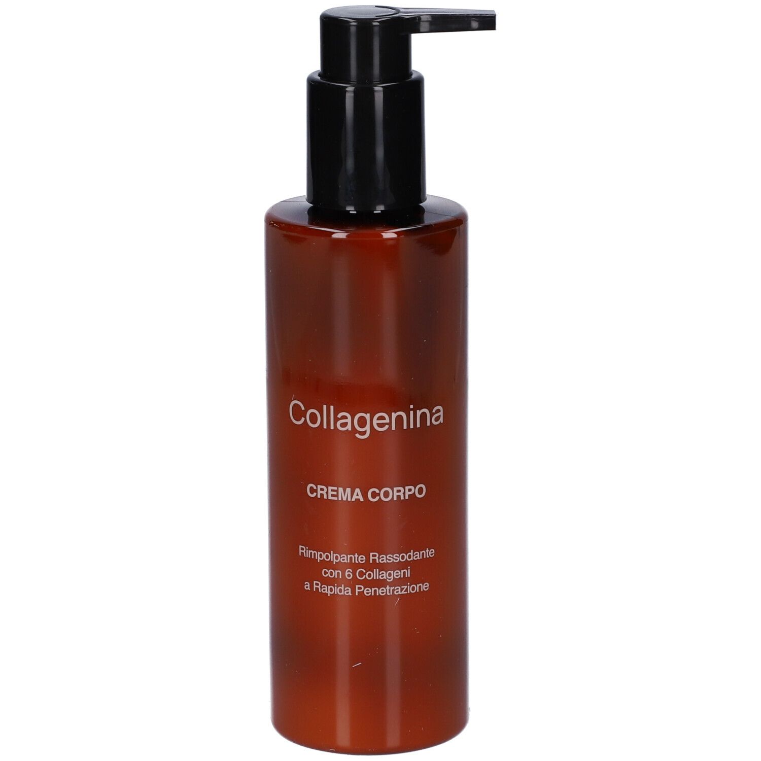 La crema corpo rimpolpante rassodante collagenina contiene 6 collageni con peso molecolare differenziato a rapida penetrazione (Hydrolyzed Collagen 2K Da, Collagen Amino Acids 2.4K Da, Hydrolyzed Collagen 4K Da, Hydrolyzed Collagen 12K Da, Soluble Collagen 230K Da, Soluble Collagen 300K Da) e componenti per la produzione di collagene dall’interno (glycine, proline, hydroxyproline, palmitoyl tripeptide-5) e per l’effetto antiglicazione (carnosine). Contiene inoltre un tetrapeptide che contrasta il rilassamento cutaneo e saccharide isomerate che nutre la pelle rinforzando la barriera cutanea. La sua azione consente di rassodare la pelle contrastando il processo di rilassamento cutaneo e donando tonicità e compattezza. La texture leggera dal tocco setoso idrata la pelle senza ungere. A tecnologia transdermica con 5 enhancer.