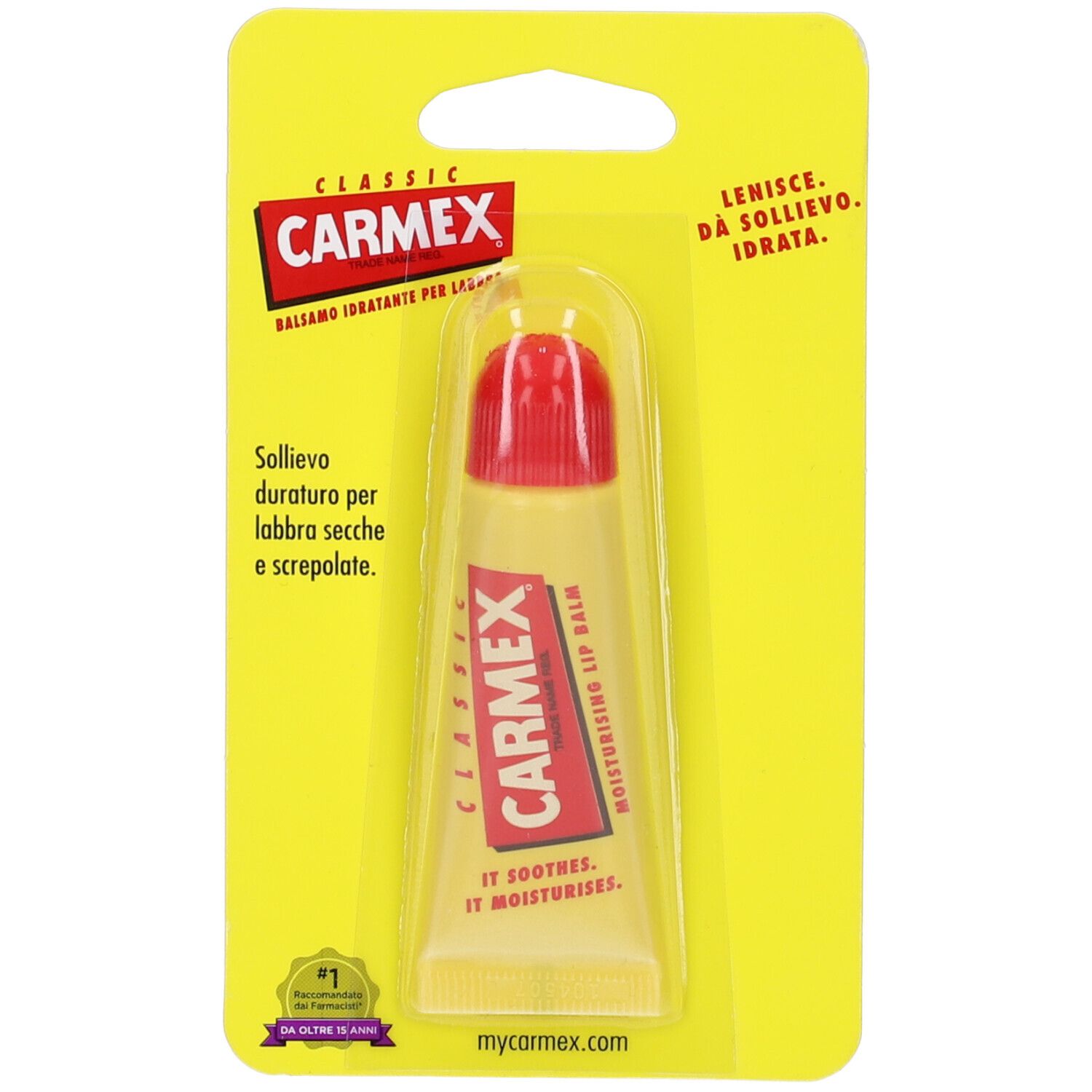 Sollievo duraturo per labbra secche e screpolate. La formula unica di Carmex lenisce, dà sollievo e idrata—rendendo le labbra morbide e sane.