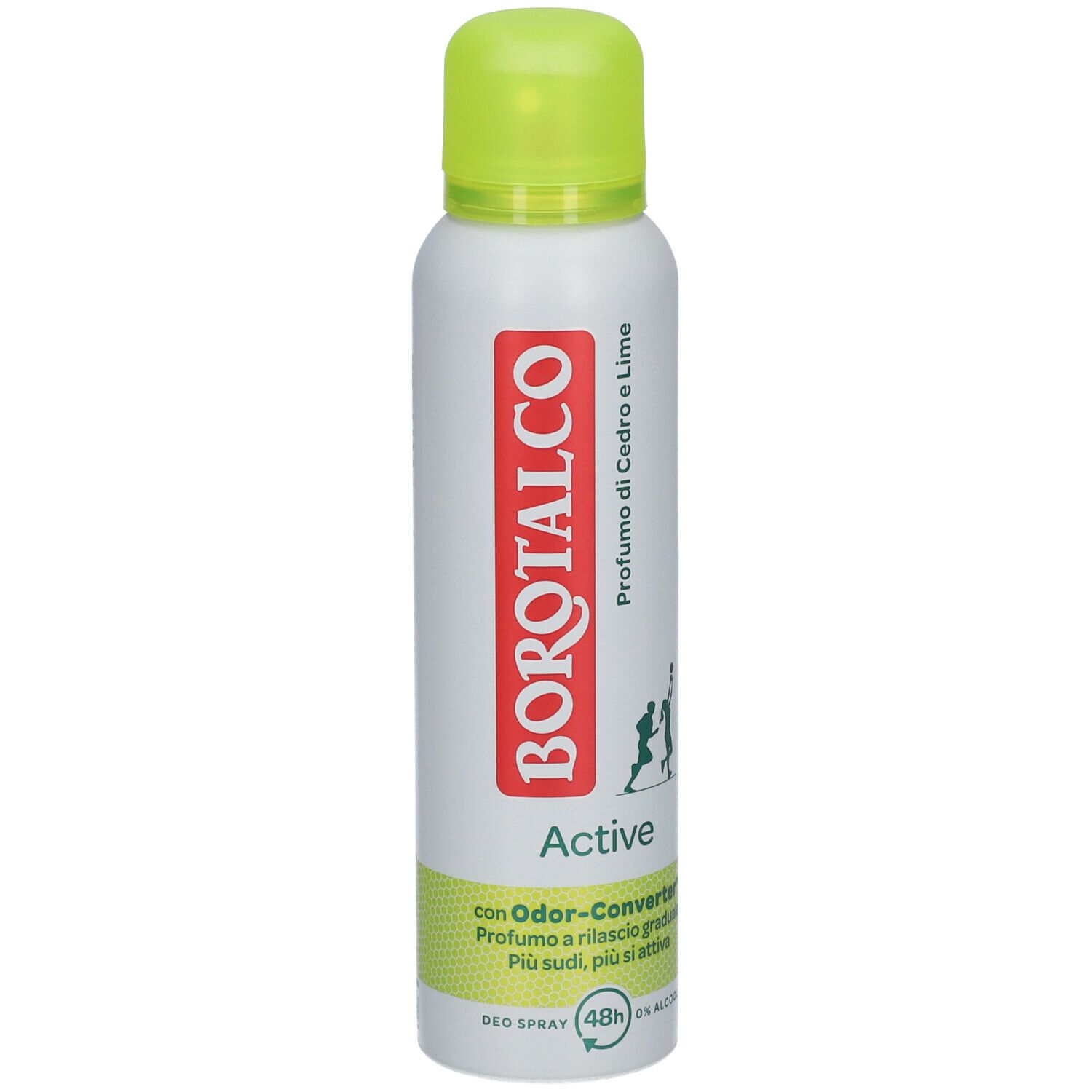 Da Borotalco nasce Active, l’esclusivo deodorante Spray con l’innovativa tecnologia Odor-Converter™: microcapsule che si attivano con sudore e movimento rilasciando extra profumo nei momenti di maggior bisogno, per una freschezza continua, per cui si suda più si profuma. Per una efficacia testata anche sotto sforzo fisico ed un profumo a rilascio graduale.