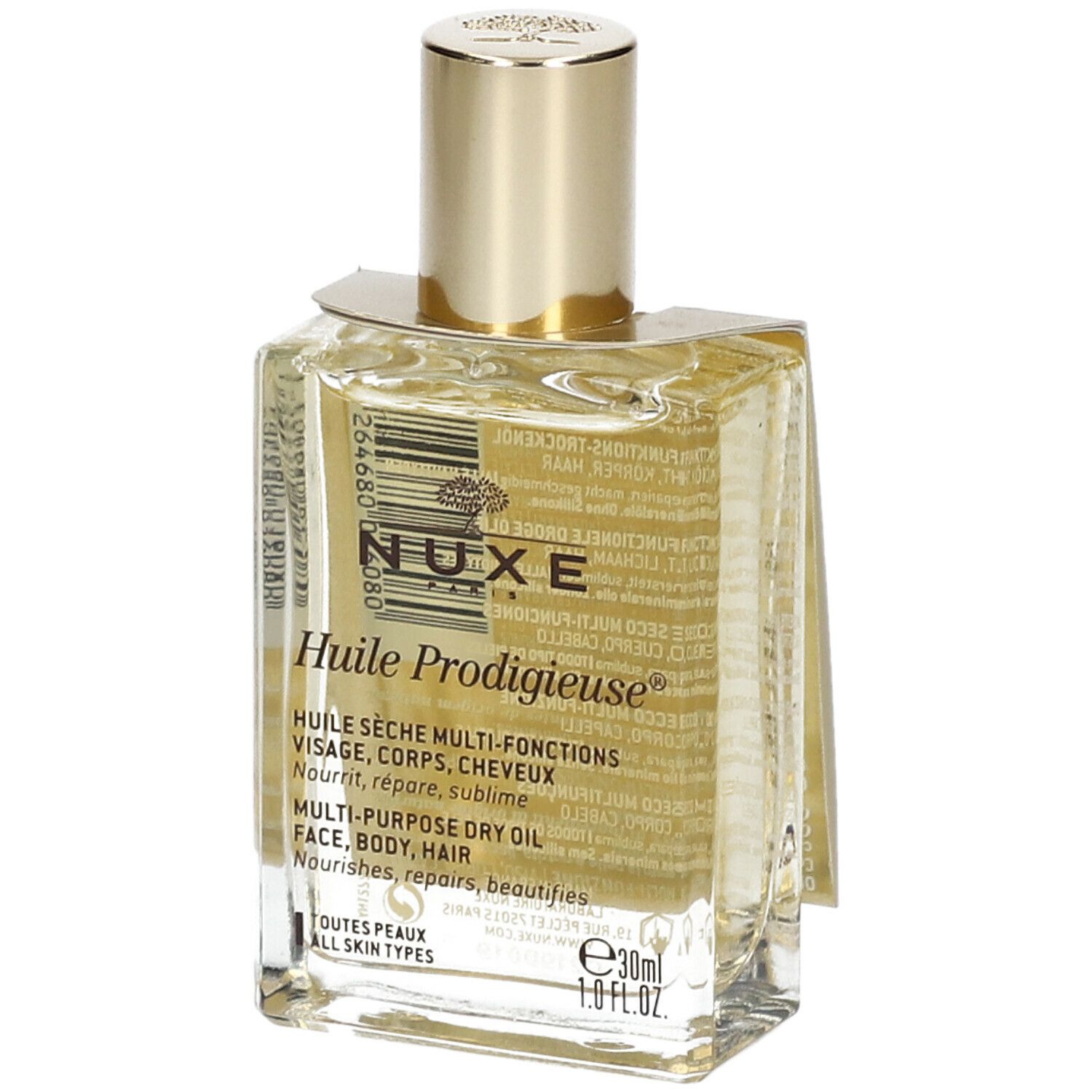 Il trattamento mitico ai 7 oli vegetali preziosi e con il 98% di ingredienti di origine naturale, offre un'idratazione a lunga durata sulla pelle del viso e del corpo. La sua azione antiossidante, il suo effetto “scudo anti-inquinamento” e la sua efficacia sulla riduzione dell’aspetto delle smagliature ne fanno un alleato quotidiano. Grazie alla sua texture olio secco inimitabile e al suo profumo travolgente dalle note solari e sensuali, l'Huile Prodigieuse regala un autentico momento di piacere.