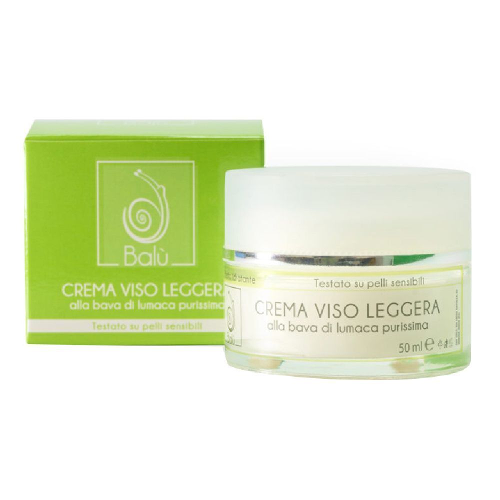 Crema viso formulata con oli leggeri, dalla texture leggera e fresca, dalla facile stesura ed il facile assorbimento, la pelle risulta visibilmente setosa, senza quella fastidiosa sensazione di unto. Possiede un'alta concentrazione di bava di lumaca purissima tale da permettere un azione idratante, rivitalizzante, ristrutturante e anti-age. La bava di lumaca utilizzata è prodotta esclusivamente da lumache italiane, allevate con metodi naturali, non invasivi e che non recano danno biologico all'animale. Contiene naturalmente un'elevata quantità di attivi funzionali, quali collagene, elastina, retinolo, acido glicolico, allantoina, acido ascorbico, tocoferolo, peptidi e mucopolisaccaridi che conferiscono a questa crema proprietà idratanti, antiossidanti e antirughe. Favorisce il turnover cellulare, migliora l'elasticità cunatea, attenua le rughe, aiuta a ridurre i segni di acne, cicatrici, e macchie cutanee. Mantiene la pelle più giovane e compatta, riducendo gli effetti del tempo e donando un colorito più omogeneo e luminoso. La vitamina E possiede proprietà antiossidanti, anti-radicali liberi e anti-aging. Tutto è arricchito dalla presenza dell'acqua di fiordaliso, dell'acqua di amamelide e di calendula, che lavorano sinergicamente con la bava di lumaca, rendendo questa crema ultra leggera, non appesantiscono la pelle e la lasciano respirare. Profumo Ipoallergenico.