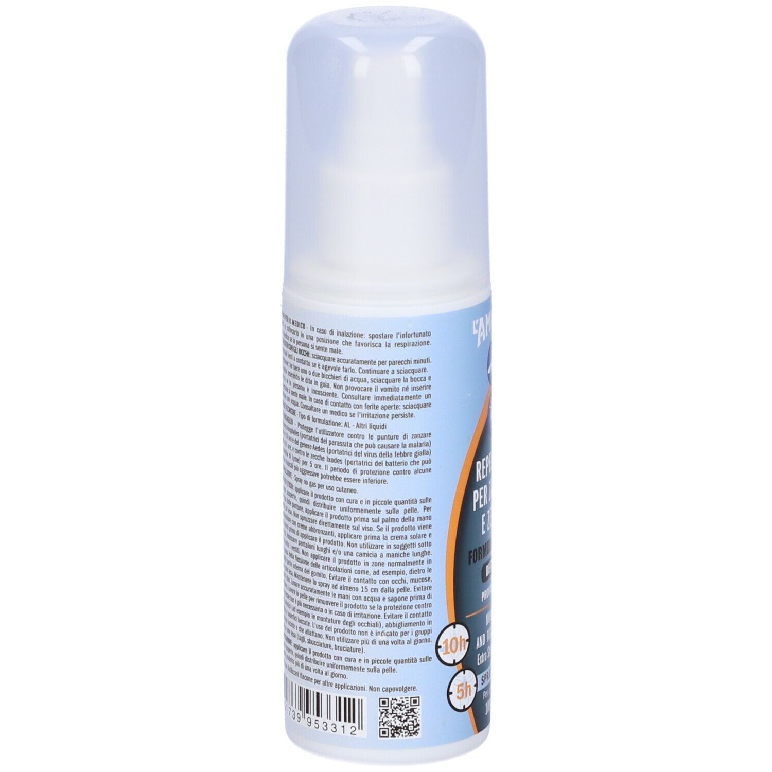 Applicare il prodotto con cura e in piccole quantità sulle parti del corpo scoperte, quindi distribuire uniformemente sulla pelle. Per proteggere il viso dalle punture, applicare il prodotto prima sul palmo della mano e poi spargerlo sul viso. Non spruzzare direttamente sul viso. Se il prodotto viene usato in combinazione con creme abbronzanti, applicare prima la crema solare e attendere 30 minuti prima di applicare il prodotto. Non utilizzare in soggetti sotto i 18 anni di età. Indossare pantaloni lunghi e/o una camicia a maniche lunghe. Non applicare sotto i vestiti. Non applicare il prodotto in zone normalmente in movimento a causa della flessione delle articolazioni come, ad esempio, dietro le ginocchia o nella parte interna del gomito. Evitare il contatto con occhi, mucose, naso, labbra e cute lesa. Mantenere lo spray ad almeno 15 cm dalla pelle. Evitare il contatto con il cibo. Lavare accuratamente le mani con acqua e sapone prima di mangiare o di bere. Lavare la pelle per rimuovere il prodotto se la protezione contro le zanzare o le zecche non è più necessaria o in caso di irritazione. Evitare il contatto con materiali sintetici (ad esempio le montature degli occhiali), abbigliamento in pelle o sintetico e superfici laccate. L’uso del prodotto non è indicato per i gruppi a rischio, le donne incinte o che allattano. Non utilizzare più di una volta al giorno. Non utilizzare su cute lesa (tagli, sbucciature, bruciature).