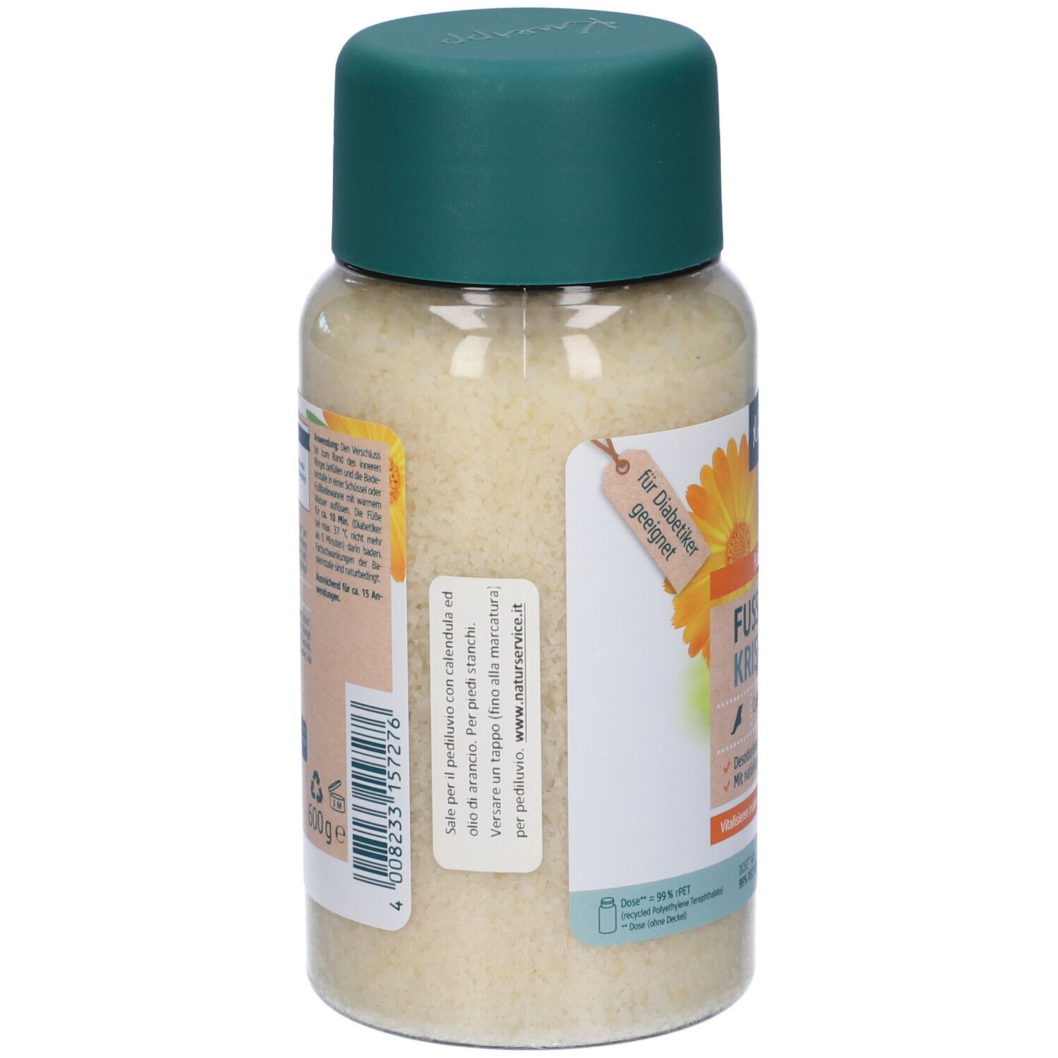 Concedete a voi stessi e ai vostri piedi un rilassante pediluvio dopo una giornata impegnativa! Il profumo agrumato con olio essenziale di arancia naturale rivitalizza i sensi e rinfresca. Con sale salino termale naturale, i cristalli del pediluvio Kneipp® puliscono delicatamente i piedi stanchi e stressati, deodorano e ammorbidiscono i calli. La preparazione ottimale per la successiva cura dei piedi! L'estratto di calendula è particolarmente indicato per la cura rigenerante e benefica delle zone cutanee sensibili e stressate. L'olio essenziale di arancia rivitalizza con la sua nota piccante e fresca. L'elevata percentuale di sale termale naturalmente puro viene ottenuto nell'unico impianto di bollitura rimasto in Europa, la Luisenhall Saline, da pura salamoia naturale, che viene costantemente arricchita a una profondità di 460 metri dai depositi di sale di un 250 milioni di anni fa mare antico. La salamoia naturalmente pura è priva di additivi chimici e influssi ambientali.